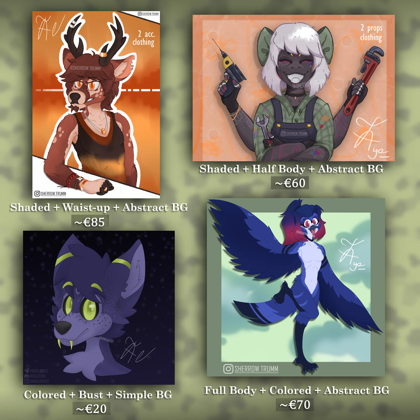 | Half Body | €20 | €25 | €35 |